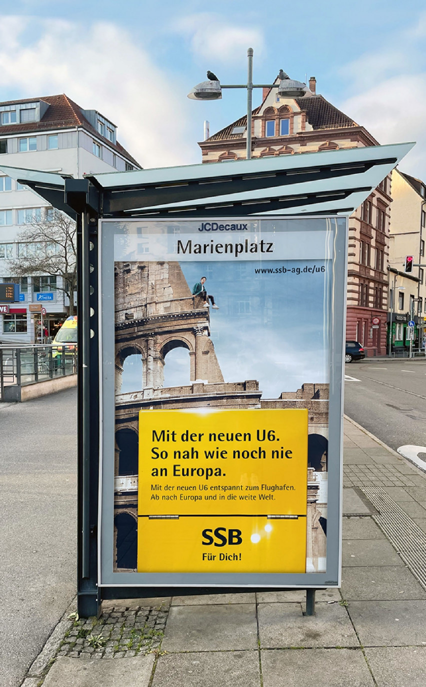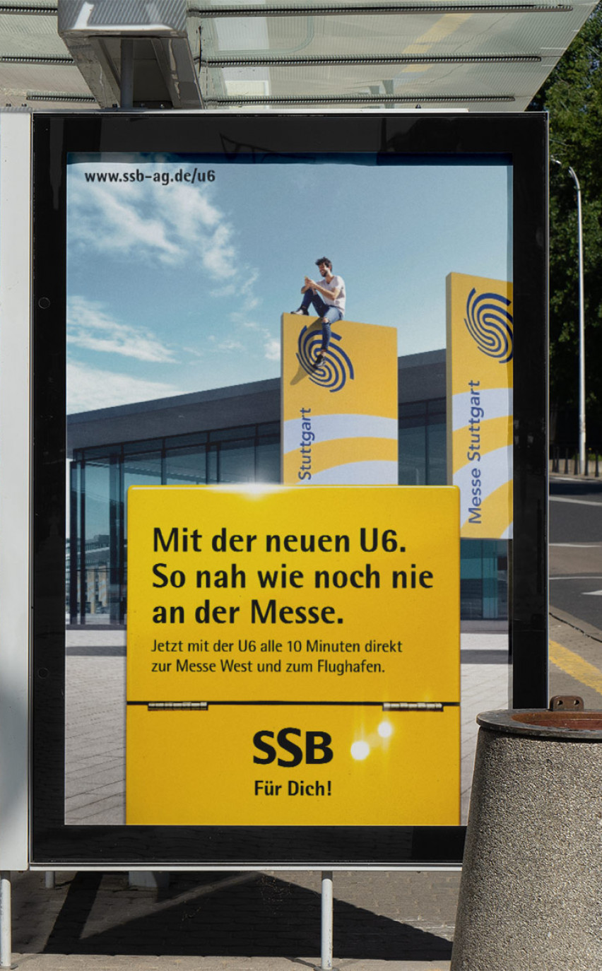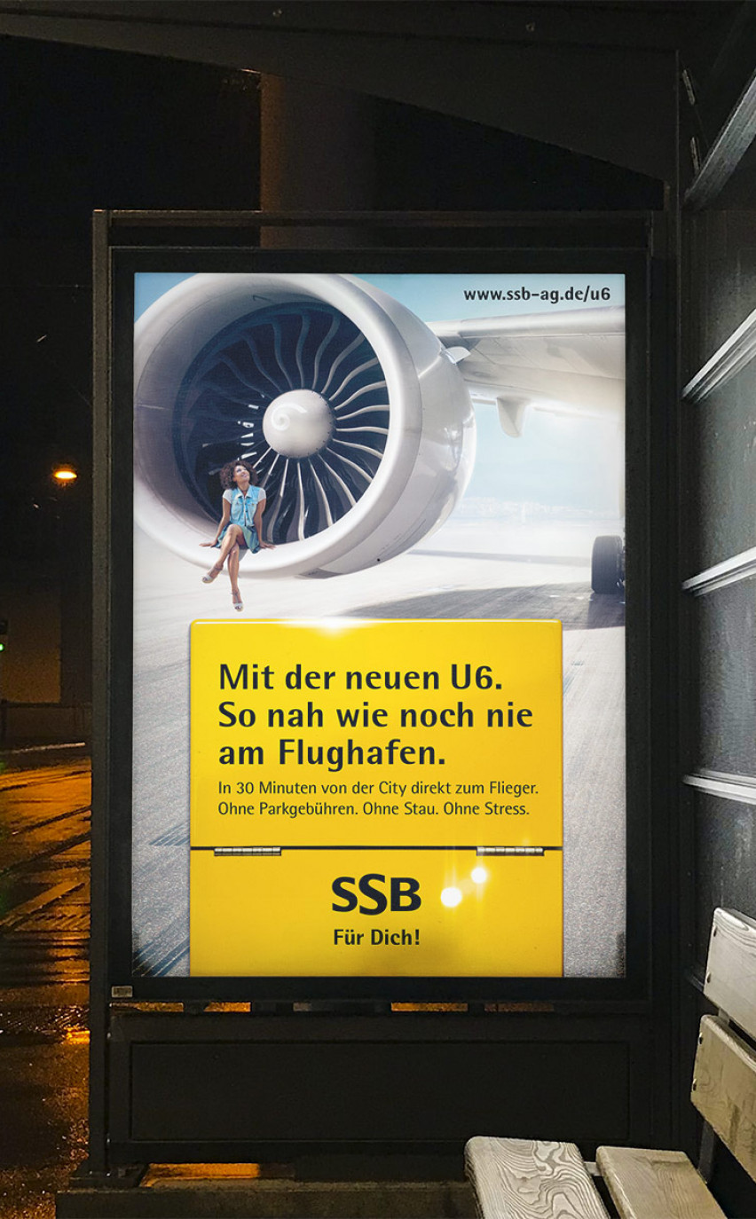 Stuttgarts erste Stadtbahn zur Startbahn: Die Stadtbahnlinie U6 fährt aus der Stuttgarter City direkt bis zum Flughafen in nur 29 Minuten. Die Streckenverlängerung sorgt für kürzere Wege: Nicht nur für Reisende, Messebesucher und alle Stuttgarter, sondern auch für diejenigen, die rund um den Flughafen wohnen und arbeiten. Dazu hat hey David eine Kampagne entwickelt, die diese neue Nähe in Szene setzt.